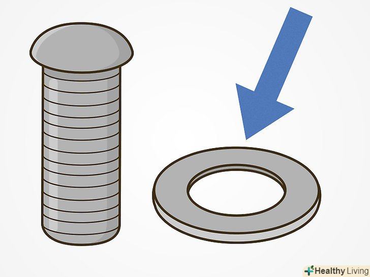Скористайтеся шайбою, якщо у вас виникають труднощі з затягуванням болта до кінця. Якщо у вас не виходить до кінця стягнути стикове з'єднання болтом, надіньте на болт додаткову шайбу, щоб вона зайняла вільне місце між болтом і елементом ліжкового каркаса. [6]