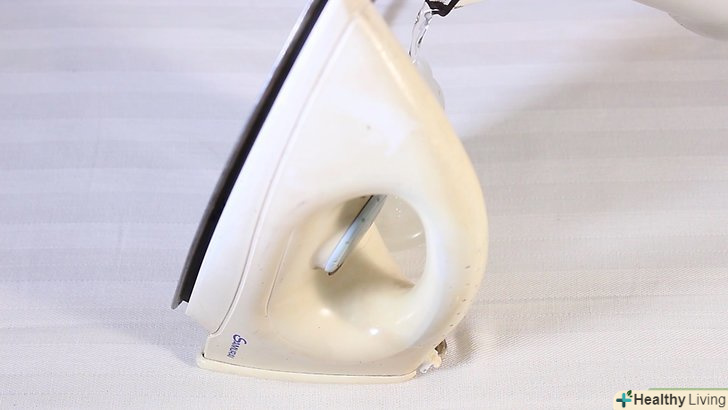Залийте свіжу воду в паровий відсік праски. у сучасних прасках є невеликий відсік для води. Знайдіть пластикову заглушку у верхній частині праски. Залийте воду з крана до верхньої межі. [2]- При використанні праски вода перетворюється в пар і допомагає розгладити складки.
