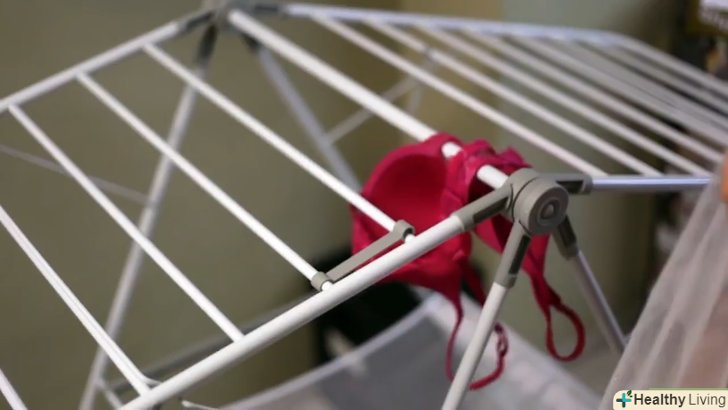- Залиште бюстгальтер сохнути на свіжому повітрі. ви можете або повісити бюстгальтер на мотузку, або покласти його на чисте, сухе рушник. Якщо ви вирішили повісити бюстгальтер на мотузку, то не вішайте за лямки, можете розтягнути їх. Замість цього повісьте бюстгальтер, закріпивши його на мотузці за середину. Ви також можете повісити бюстгальтер сушитися на вішалку.