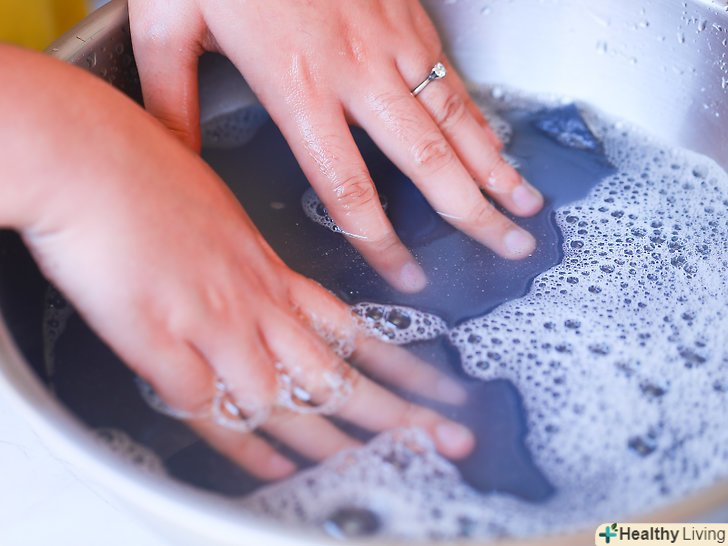 Заповніть раковину або тазик теплою водою і додайте м'який миючий засіб. вам знадобиться від 1 чайної ложки до 1 столової ложки миючого засобу. [1] Якщо у вас немає тазика, ви можете використовувати відро. Переконайтеся, що миючий засіб не містить спирт. [2] Якщо у вас немає відповідного засобу вдома, ви можете приготувати його самі: [3]- Змішайте 1 склянку (240 мл) гарячої води, 1 чайну ложку дитячого шампуню з 1-2 краплями ефірного масла (наприклад, лаванди або ромашки). Заповніть раковину або відро теплою водою, потім додайте Саморобний миючий засіб.