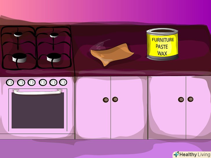 Нанесіть віск для меблів на подряпини, використовуючи чисту м'яку тканину.- Нанесення воску на стільницю з ламінату є найкращим способом приховати невеликі подряпини.