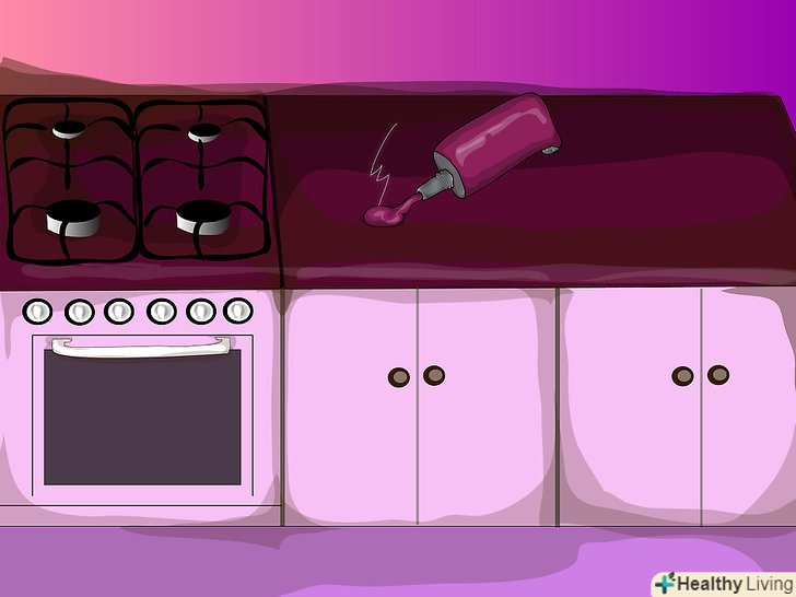 Очистіть поверхню вашої стільниці з ламінату, де з'явилися подряпини.- Використовуйте теплу воду і рідину для миття посуду або розпорошите нерозбавлений оцет на пошкоджену поверхню, щоб видалити всі існуючі плями до видалення подряпин. Якщо подряпини занадто глибокі і оцет не видалив плями, налийте невелику кількість спирту на пошкоджену ділянку.