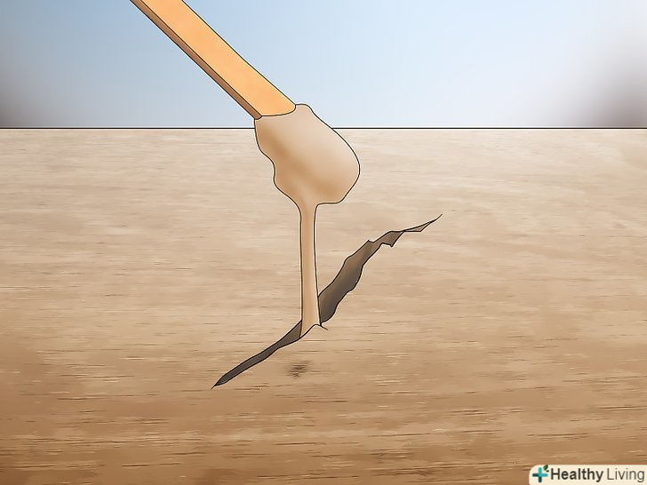 Переповніть тріщину наповнювачем. Доверху заповніть тріщину наповнювачем. Завдяки зайвому матеріалу заповнювач краще зіллється з тріщиною в процесі розгладження і шліфування. [3]