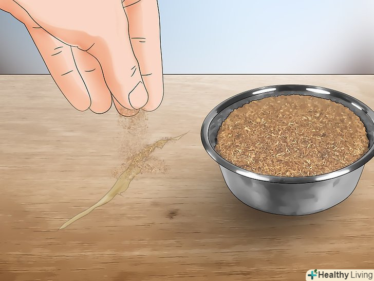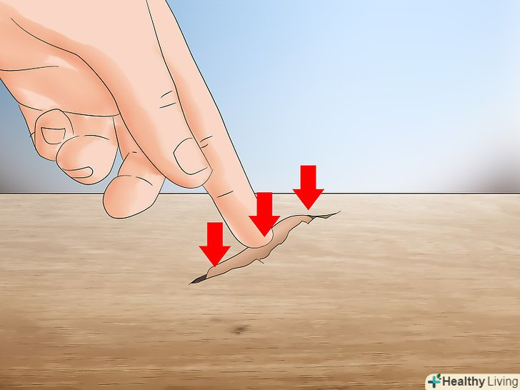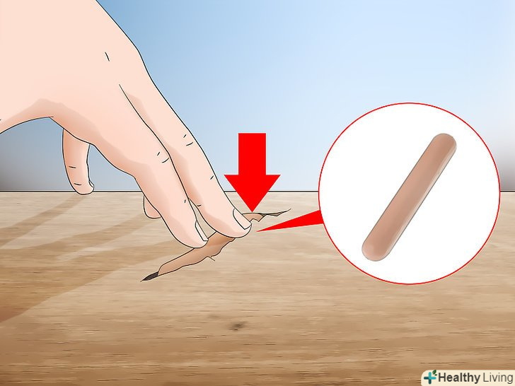 Накрийте клей тирсою. посипте клей великою кількістю тирси, щоб вони повністю його накрили. Проведіть пальцем по тріщині, щоб клей точно приклеївся до тирси. Коли закінчите, тирса приховають клей з уваги, зливаючись з рештою деревиною. [9]