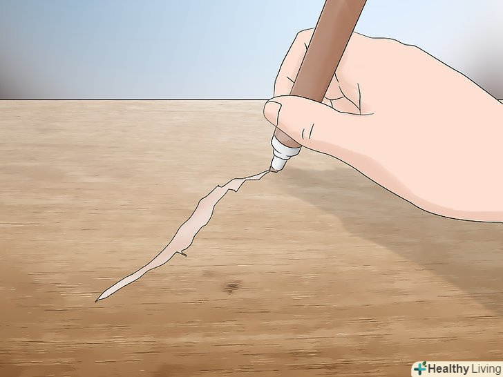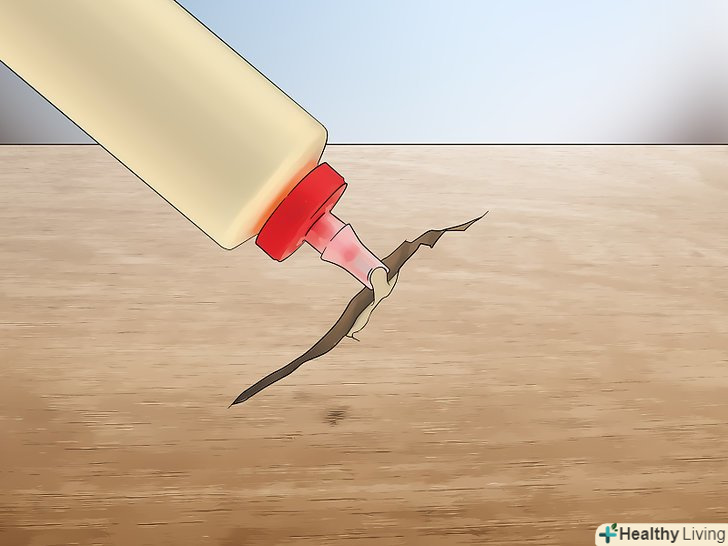 Видавіть столярний клей в тріщину. купіть в магазині пляшечку зі столярним клеєм. Вставте носик в тріщину і натисніть на пляшечку поки клей не заповнить весь простір, яке необхідно закрити. Невеликі тріщини можна заповнити шприцом, щоб клей точно потрапив в саму глиб тріщини. [8]