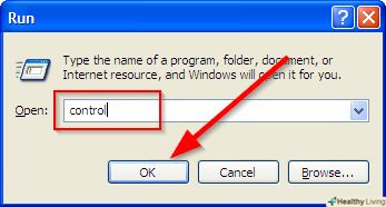 Натисніть кнопкуПускі клацніть по Виконати.- ВведітьПанель керування і натиснітьEnter.