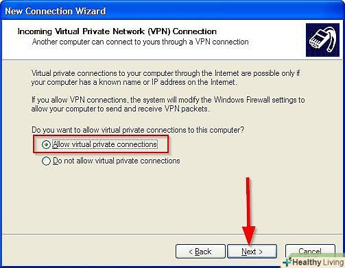 Виберіть Дозволити віртуальні приватні підключення.натисніть Далі.