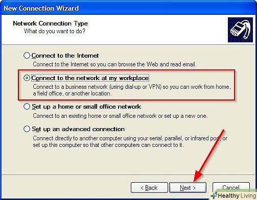 ВиберітьПідключити до мережі на робочому місціпотім знову Далі.
