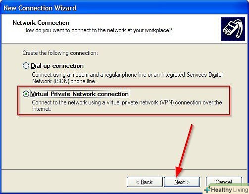 НатиснітьПідключення до віртуальної приватної мережі іДалі.
