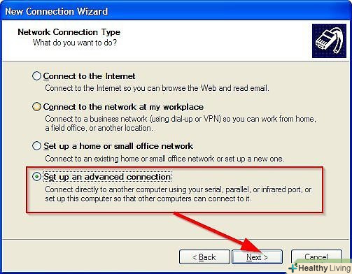 Виберіть останню опцію в спискуВстановити Пряме підключення до іншого комп'ютера.натисніть Далі.