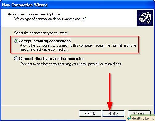 ВиберітьПриймати вхідні підключення.натисніть Далі.