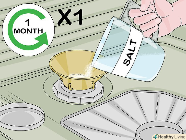 Заповнюйте бак хоча б раз на місяць. якщо на посудомийній машині немає сигнальної лампочки, тоді вам доведеться самим вирішувати, коли досипати сіль. У Посудомийні машини з вбудованим пристроєм для пом'якшення води рекомендується додавати сіль один раз на місяць. Навіть якщо у вас є світловий індикатор, але пройшло вже більше місяця, вам варто заповнити бак сіллю. [10]- Якщо ви помітили, що індикатору потрібно більше місяця, щоб сповістити вас про необхідність поповнення сіллю, можливо, він зламаний. Перевірте рівень солі і зателефонуйте виробнику, якщо виникнуть будь-які труднощі.