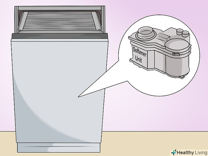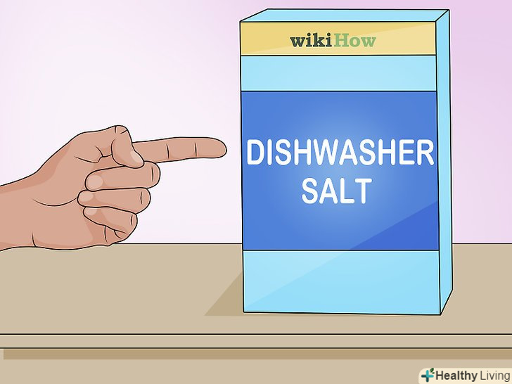 Додайте в пом'якшувач тільки сіль для посудомийних машин. купити таку сіль можна в продуктових магазинах, магазинах побутової техніки або замовити в Інтернеті. Марка солі не має значення, але ні в якому разі не використовуйте замість неї столову, морську або КОШЕРНУ сіль. Ці види солей містять добавки, які можуть збільшити жорсткість води. Більш того, така сіль може бути занадто дрібною і закупорити пристрій. [3]