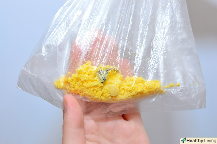 Вийміть жовток, покришите його і складіть в пластиковий пакетик, наприклад, в пакетик Zip-Loc із застібкою. попередження: переконайтеся, що яйце охололо. Тільки що звареними яйцями можна обпектися!