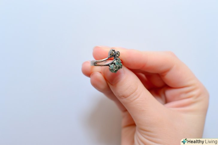 Для додання сріблу виду під старовину спочатку потрібно його почистити. можна для цього використовувати прохолодну воду і м'який миючий засіб таке, як рідина для миття посуду або рідке мило для рук. Мета цього кроку-видалити жири з поверхні срібла, які оберігають його від окислення. Коли срібло вже почищено, для проведення РЕШТИ процесу брати його потрібно, надівши на руки латексні рукавички.