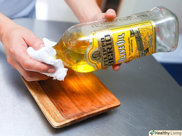 Використовуйте нешкідливий миючий засіб домашнього приготування. якщо у вас є інші види дерев'яних предметів і поверхонь (особливо це стосується дерев'яних мисок), їх можна чистити з використанням розчинів з харчових інгредієнтів. [5]- З лимона, оливкової олії і води можна приготувати ефективне і нешкідливе засіб для чищення.
