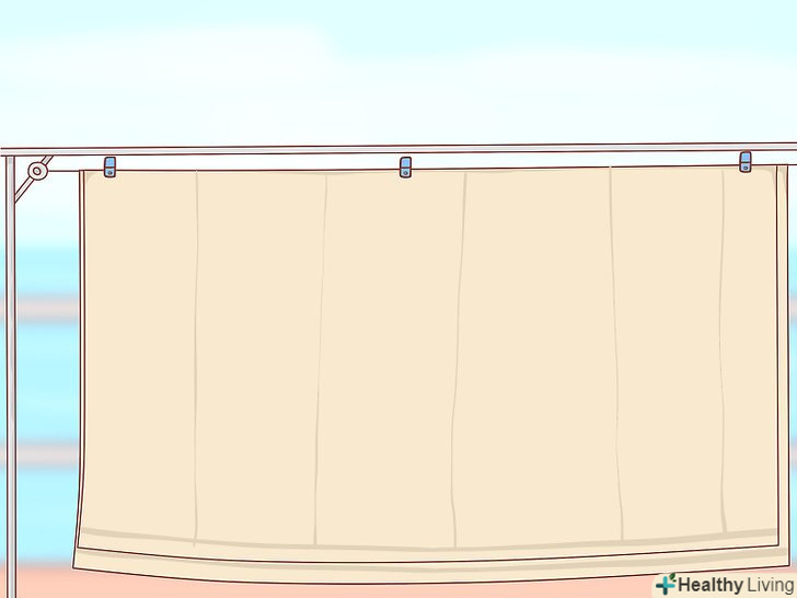 Досушіть ковдру. злегка вологе або зовсім мокре (якщо ви не хочете використовувати сушилку) ковдру слід розвісити на білизняний мотузці або штанзі для шторки душа, яка здатна витримати вагу ковдри. Дуже важливо, щоб перед повторним використанням ковдру повністю висохло. [10]
