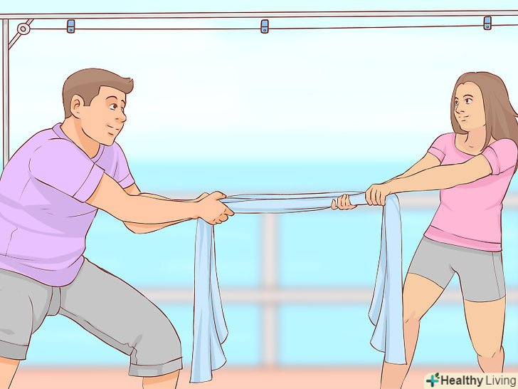 Розтягніть ковдру після прання та сушіння. залежно від виробника після прання та сушіння може знадобитися розтягнути ковдру до звичайного розміру. Злегка вологе ковдру без праці відновить форму. Для цієї дії буде потрібно помічник. [9]- Встаньте один навпроти одного і візьміться за протилежні кінці ковдри на максимальній відстані. Обережно потягніть кожен на себе, щоб трохи розтягнути ковдру.