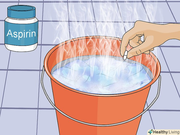 Помістіть предмет одягу в гарячу воду. Візьміть пластмасове відро і помістіть чотири таблетки аспірину в воду. Обсяг використовуваної води залежить від кількості предметів одягу. Вам знадобиться близько 8-10 літрів. [3]