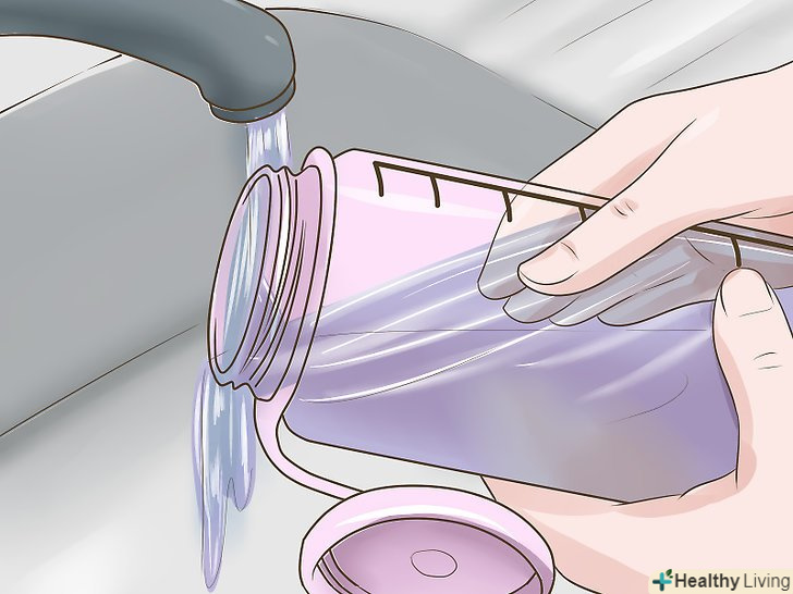 Прополощіть. вилийте розчин відбілювача в раковину і промийте пляшку прісною водою. Щоб не проковтнути частину відбілювача, можна повторно промити флягу або покласти її в посудомийну машину. Перед використанням пляшка повинна бути абсолютно сухою.