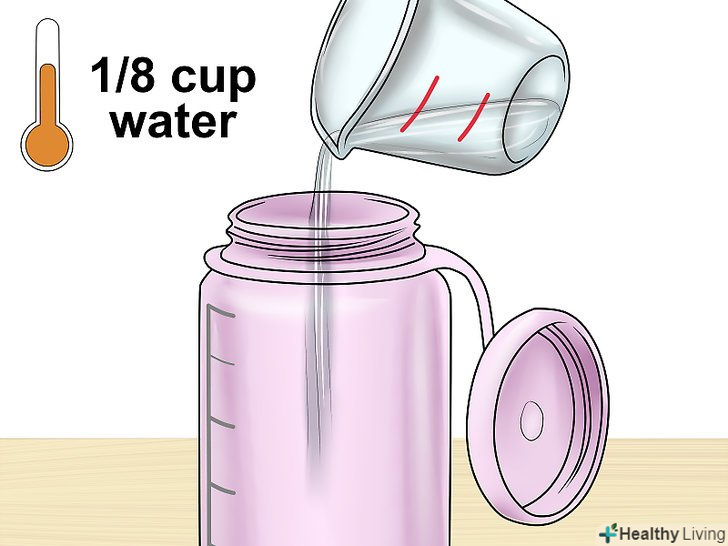Додайте води. налийте в пляшку приблизно одну восьму чашки теплої або гарячої води. Для цього підійде гаряча вода з крана, але не використовуйте окріп, так як він може розплавити пляшку. [7]