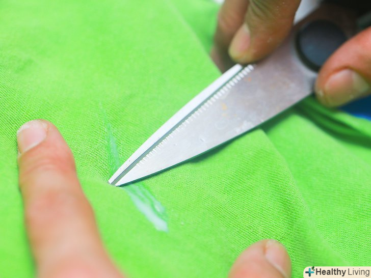 Зніміть пляму з одягу ножицями. Отковыривайте шпаклівку шматочок за шматочком (буде краще, якщо ви попередньо її заморозите). Також можна скористатися ножем для масла, пилкою або іншим підручним інструментом. Будьте обережні, щоб не порізатися і не пошкодити при цьому одяг!