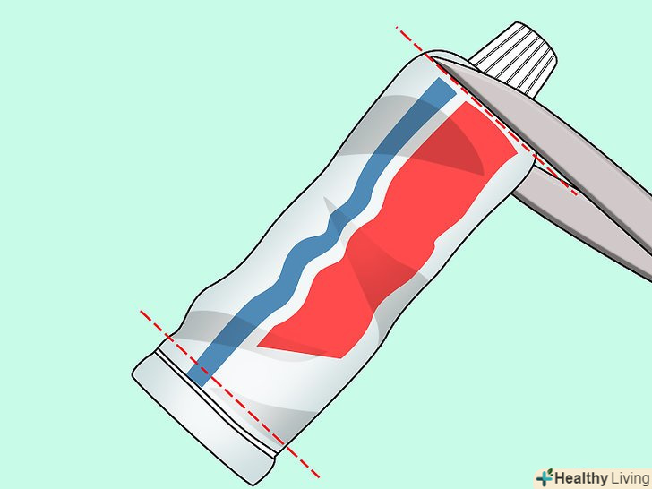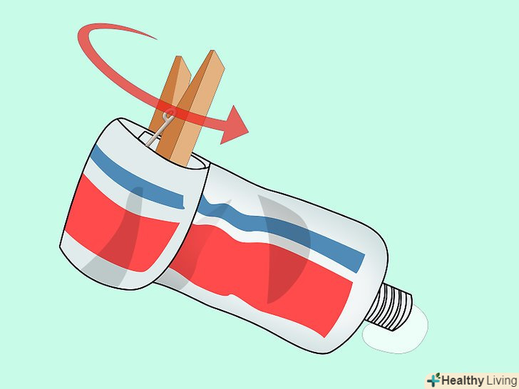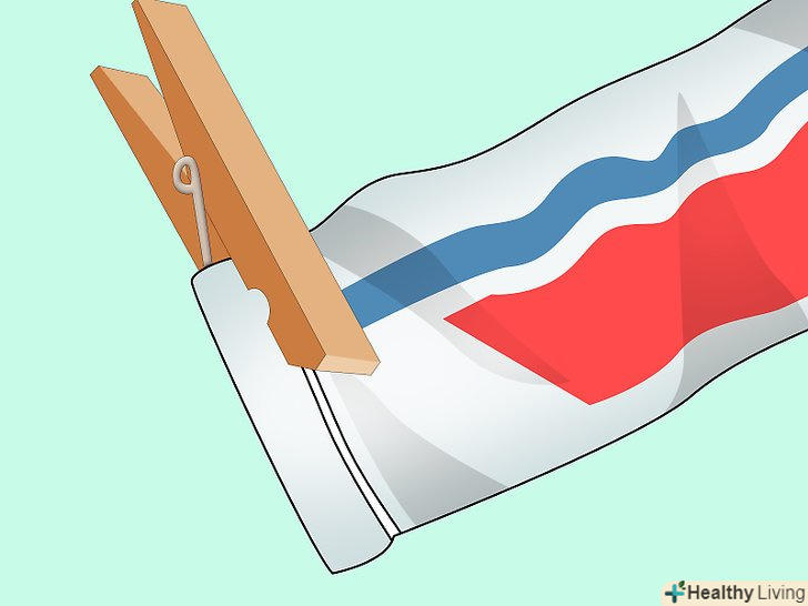 За допомогою прищіпки/затиску Змотайте тюбик. велика частина зубної пасти видавиться назовні.