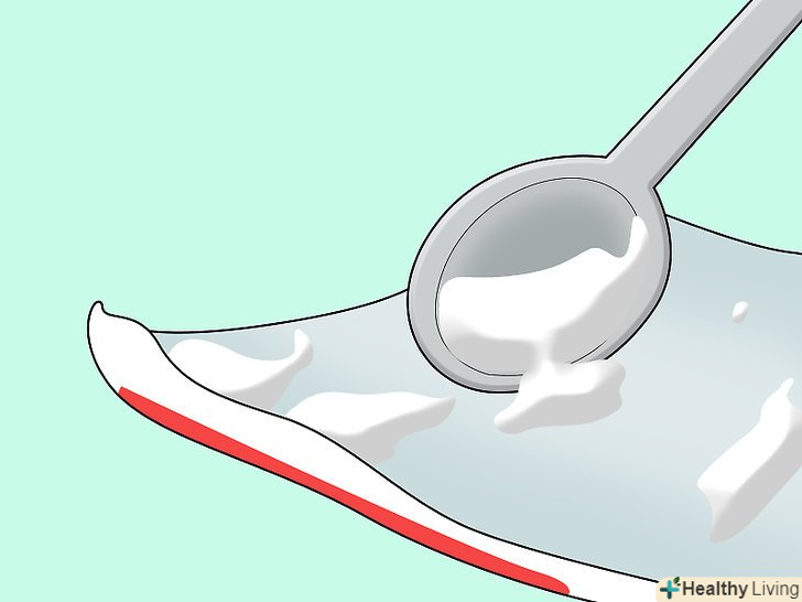Зішкребіть зубну пасту за допомогою чайної ложки на харчову плівку. викиньте решту упаковки з пасти.