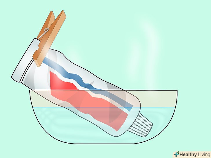 Опустіть кришкою тюбик в миску з гарячою водою. переконайтеся, що кришка щільно закручена. Залиште тюбик на кілька хвилин.