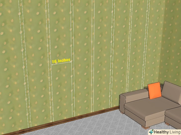 Розрахуйте місце розташування залишилися балок, вимірявши дистанцію від кута до кута. Так як балки розташовані один від одного на відстані 40,64 сантиметра, для знаходження інших балок можете почати вимірювати з будь-якого кута.- Пам'ятайте, що не всі стіни діляться рівно на 40,64 сантиметра, тому в стіні може перебувати балка на відстані менше, ніж 40,64 сантиметра від попередньої балки.