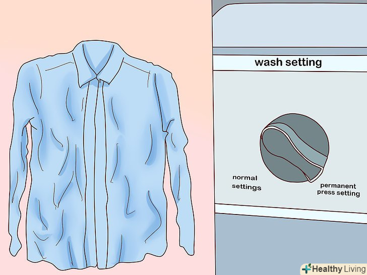 Виберіть опцію легкого прасування для одягу, яка сильно мнеться. деякі блузочні і брючні тканини, наприклад, льон і віскоза, сильно мнуться. Вибирайте для таких тканин опцію легкого прасування, яка передбачає більш повільне обертання барабана пральної машини в кінці програми прання, — завдяки цьому речі будуть менш зім'ятими до моменту, коли ви виймете їх з пральної машини. [13]