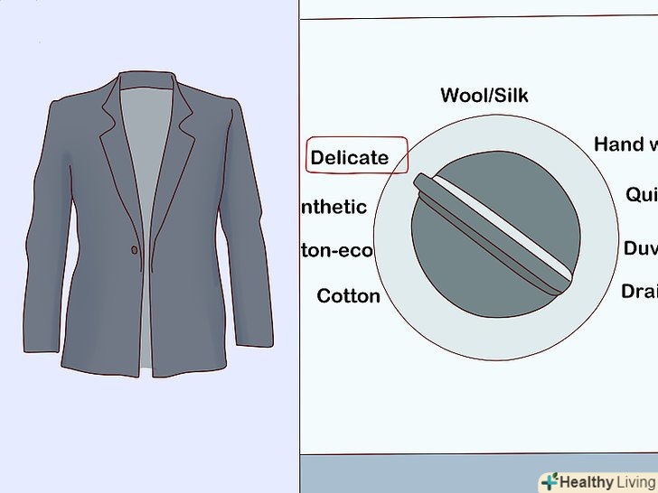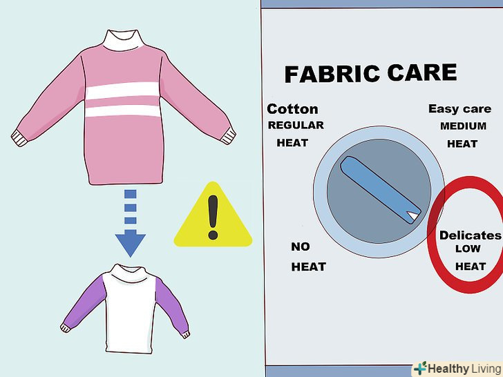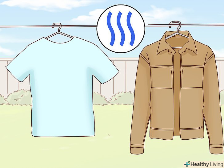Сушіть речі природним чином, щоб вони прослужили довше. якщо ви хочете продовжити термін служби своїх речей, то їх можна сушити на мотузці. Просто купуйте прищіпки або вішалки, щоб підвішувати речі на натягнуту мотузку на вулиці або безпосередньо у себе вдома. [23]- В якості альтернативи можна розкладати речі для просушування на горизонтальній поверхні, попередньо підстеливши рушник, або ж користуватися стійкою-сушаркою для білизни. Це допомагає зменшити заломи на тканині, які залишаються від мотузок, а також витягнуті шишки на плечах блузок від вішалок, на яких вони сохли.