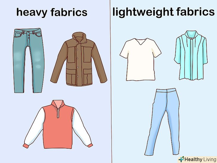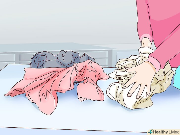 Розсортуйте речі за типом тканини. розумно буде розсортувати речі на дві групи: з щільних тканин і з легких (тонких) тканин. Таким чином у вас з'явиться можливість вибрати найбільш підходящий цикл прання для конкретних речей. [2]- Наприклад, покладіть в групу речей з щільних тканин джинси, толстовки і штани з грубої бавовни, куртки і щільну Спортивний одяг.