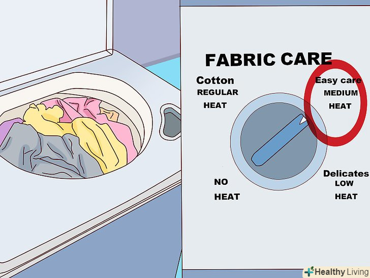 Використовуйте програму звичайної сушки для джинсів, толстовок і рушників. більш щільні тканини здатні витримувати нагрівання і швидке обертання барабана сушильної машини на звичайній програмі. Крім того, товсті тканини можуть не просохнути до кінця на більш дбайливих програмах сушіння. [20]- Якщо ви переживаєте про те, що деякі речі можуть сісти або поблекнуть, використовуйте меншу температуру сушіння або сушіть їх природним шляхом.