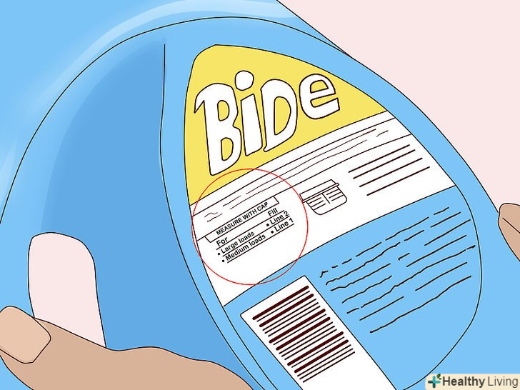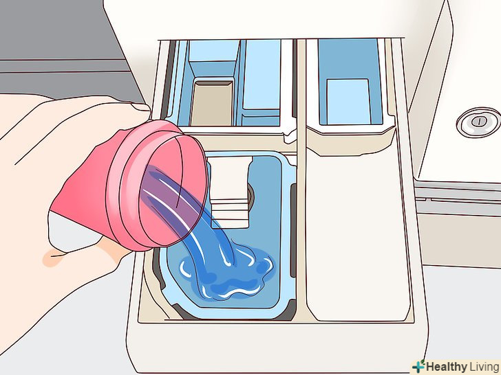 Використовуйте миючий засіб в тій кількості, яка рекомендована на його етикетці. прочитайте інструкції до миючого засобу для прання, щоб знати, в якому обсязі його слід використовувати. Витрата різних миючих засобів помітно відрізняється один від одного, тому важливо точно дотримуватися інструкції до конкретного засобу, яким Ви користуєтеся, щоб не перестаратися з його кількістю. [8]- Зайва кількість миючого засобу може привести до того, що мило залишиться на ваших речах навіть після полоскання.