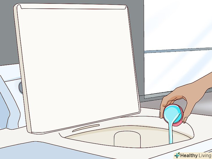 Додайте миючий засіб безпосередньо в бак пральної машини з вертикальним завантаженням. для машин з вертикальним завантаженням може знадобитися спочатку наповнити бак водою, після чого додати в неї миючий засіб, а потім і білизна. Зверніть увагу на інструкції на внутрішній стороні кришки пральної машини, щоб точно знати, як правильно додавати миючий засіб. [7]