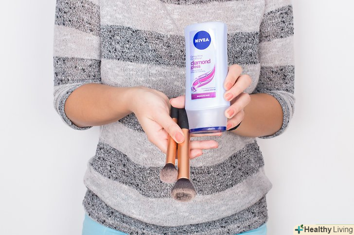 Промити і пом'якшити макіяж кисті. Кондиціонер для волосся пом'якшує не тільки волосся, але і пензлики для макіяжу. З метою гігієни пензлика для макіяжу необхідно мити кожні кілька місяців, і кондиціонер для волосся прекрасно підходить для цієї мети.- Наповніть миску теплою водою і додайте трохи кондиціонера для волосся. Візьміть пензлики для макіяжу і опустіть їх у воду десь на 5 хвилин. Пальцями розімніть щетинки пензликів, щоб вони повністю просочилися. Коли закінчите, дайте їм просохнути на повітрі. [11]