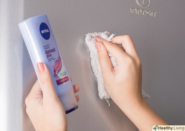Поліруйте нержавіючу сталь. Нержавіюча сталь — дуже поширений в господарстві матеріал. Начищена сталь виглядає чудово, проте вона легко брудниться і тьмяніє. [12]- Протріть сталеві поверхні чистою ганчіркою з кондиціонером для волосся, щоб вони стали гладкими і блискучими. Коли закінчите, відполіруйте їх чистою ганчіркою. Перш ніж протирати прилади з нержавіючої сталі будь-яким засобом (не тільки кондиціонером), перевірте його дію на непомітній ділянці, щоб переконатися, що ви не зіпсуєте поверхню.