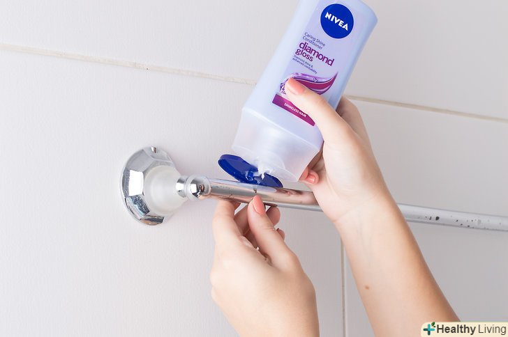 Запобігайте появі іржі. основна функція кондиціонера — захист вашого волосся, але він також захищає і метали. Будь-який метал, на який впливає волога, схильний до утворення іржі. Щоб боротися з нею, час від часу протирайте поверхню невеликою кількістю кондиціонера для волосся.- Візьміть чисту ганчірочку, щоб натерти швидко іржавіють поверхні, наприклад дренажні труби, змішувачі, інструменти і дверні петлі. Коли закінчите, промийте їх чистою водою.