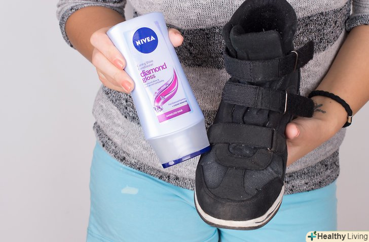 Не дайте солі погубити Вашу взуття. сніг і сіль здатні зіпсувати шкіряні чоботи, але кондиціонер для волосся допоможе захистити їх і відновити втрачену вологу. Втирайте кондиціонер для волосся в шкіряне взуття, щоб створити захисний шар, який не дасть взуття увібрати в себе сіль і піти плямами. [13]- Візьміть чисту ганчірку і втирайте невелику кількість кондиціонера в шкіру по всій поверхні взуття. Зітріть зайвий кондиціонер, який не вбрався в шкіру. [14]