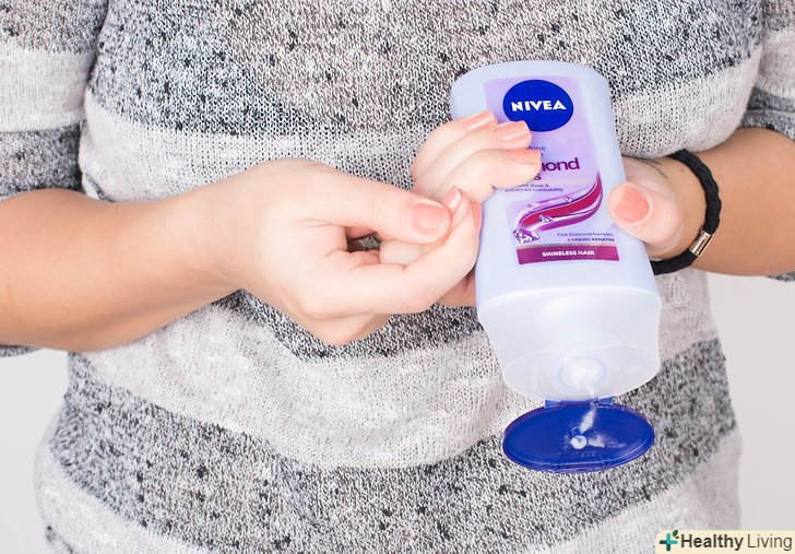 Приборкайте наелектризовані волосся. у сухі дні волосся іноді вирішують встати стирчком в різні боки. Кондиціонер для волосся може стати тим рятівним колом, який обтяжить ваше волосся, щоб вони залишалися лежати гладко. [6]- Розітріть трохи кондиціонера між долонями і нанесіть його на волосся.