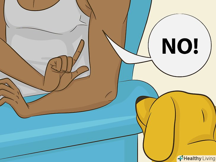 Навчіть собаку не встрибувати на меблі. якщо вихованець постійно застрибує на ваше ліжко або диван, спробуйте навчити його спати на підлозі. Лайте собаку, коли вона залазить на меблі, і дайте їй зрозуміти, що цього робити не можна. Будьте наполегливі і стійте на своєму, щоб перевчити вихованця і запобігти появі шерсті на меблях. Врахуйте, що якщо собака часто линяє, вам все одно доведеться часто пилососити, щоб прибрати шерсть з підлоги.- Проконсультуйтеся з ветеринаром. Якщо ви вважаєте, що випадання шерсті пов'язано з якимось захворюванням, вам варто звернутися до ветеринара. Ветеринар зможе виписати ліки проти випадання шерсті або визначить захворювання, яке викликає цей стан.