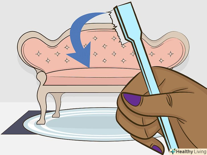 - Спробуйте прибрати шерсть з дивана повітряною кулькою. Надійти кульку, а потім проведіть його по поверхні дивана. Статичний заряд від кульки притягне до себе шерсть. [8]