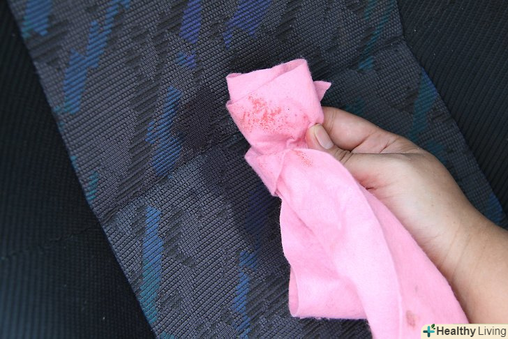 Змийте розчин. за допомогою добре змоченою в холодній воді ганчірки змийте розчин з оббивки. Працюйте ретельно і використовуйте легкі торкання ганчіркою до оббивки до тих пір, поки не приберете пляму, наскільки це можливо. [5]