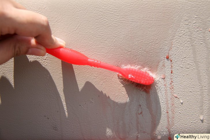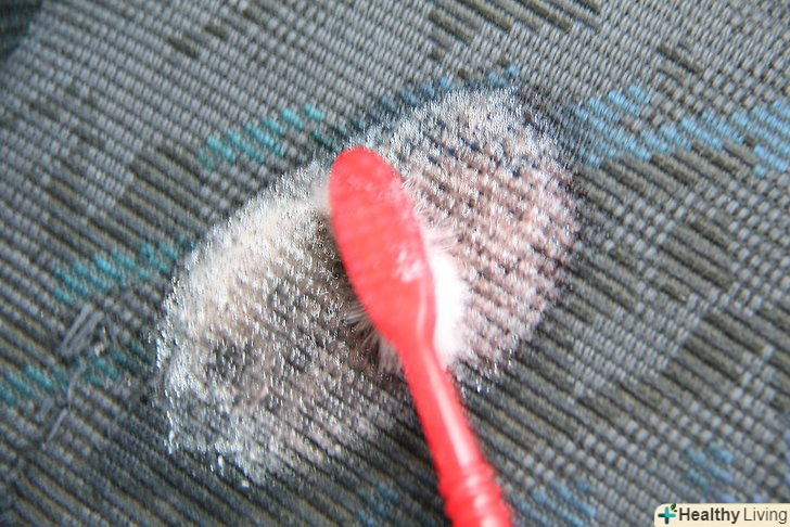 Обережно потріть пляму щіткою. звичайної господарської щіткою легко можна затерти пляму занадто сильно, і воно глибше в'їсться в тканину. Зубна щітка не дасть вам докладати зайву силу і дозволить уникнути такої помилки, яка може збільшити пляма або зробити його стійким.