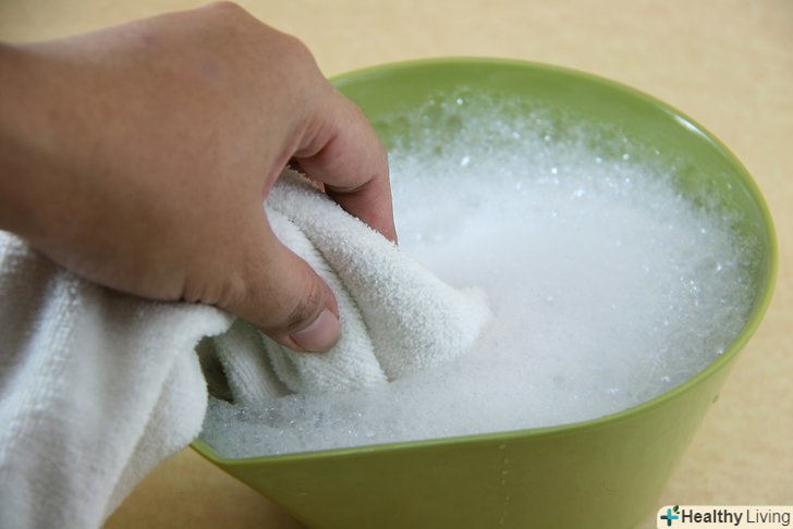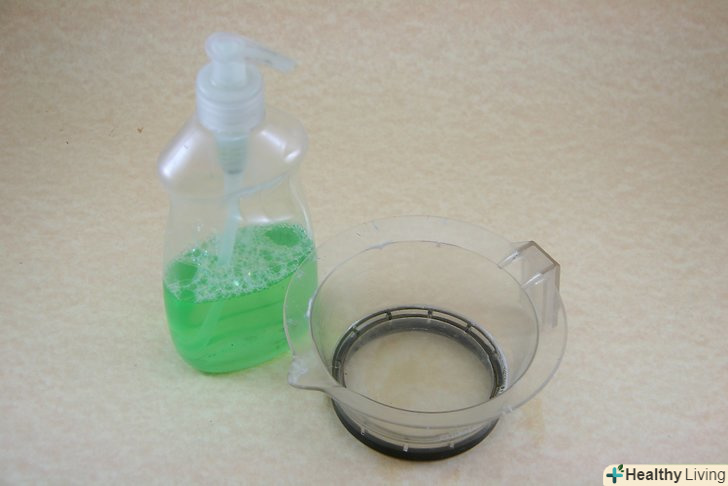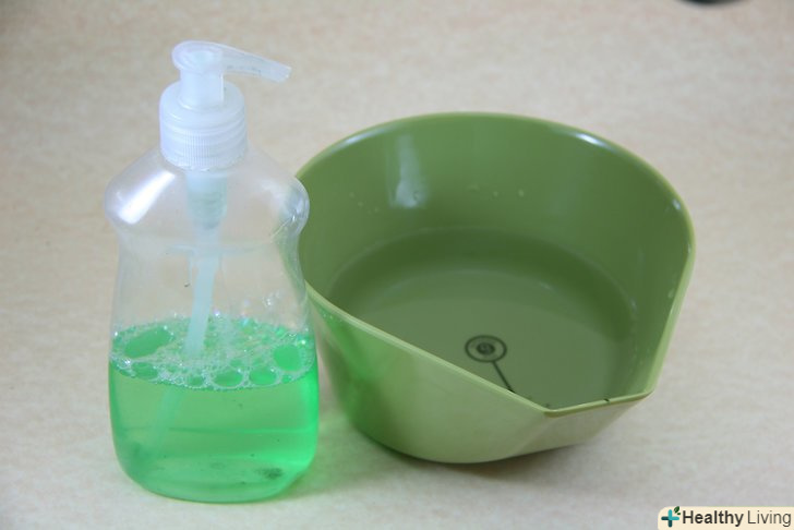 Приготуйте розчин рідкого миючого засобу для посуду і холодної води. для приготування розчину змішайте у великій мисці 1 столову ложку рідини для миття посуду і 480 мл холодної води. [3]