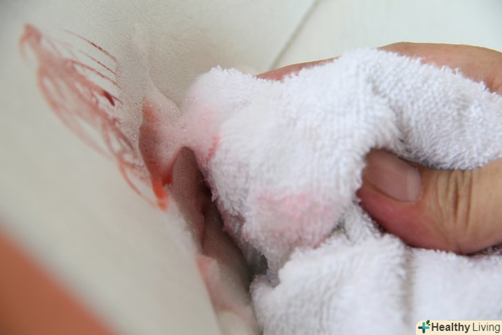 Промакніте пляма. корисно буде оперативно зібрати надлишки крові тканинним або паперовим рушником. Тільки не тріть пляма, так як через це воно може збільшитися в розмірах або ще глибше вбратися в оббивку. Постарайтеся максимально зібрати кров легкими дотиками тканинного або паперового рушника (якщо буде необхідно, змініть його на нове).