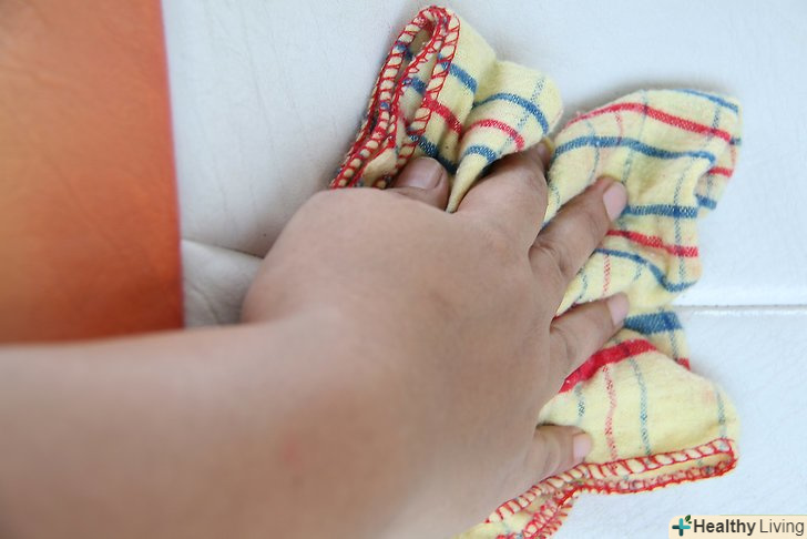 Сполосніть чистячий розчин. візьміть чисту вологу ганчірку, щоб стерти залишки розчину. Переконайтеся в тому, що начисто витерли оббивку, так як мило може залишити після себе мильну плівку і навіть пошкодити шкіру.