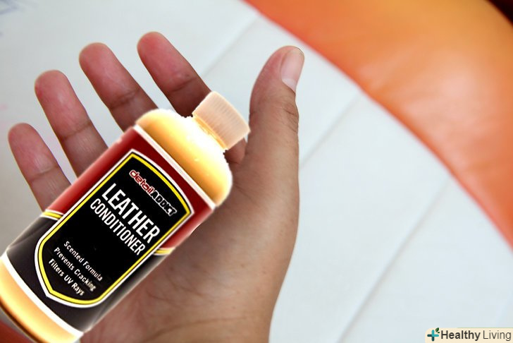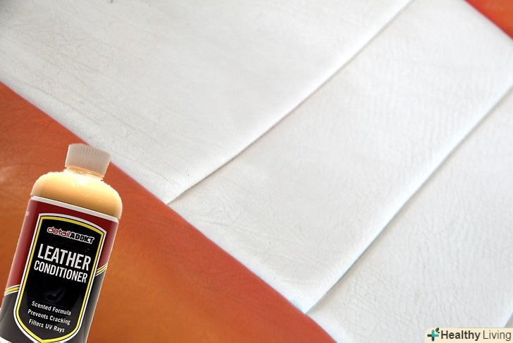 Обробіть оббивку кондиціонером для шкіри. цей крок дозволить запобігти утворенню нових плям, а також зволожить шкіряну оббивку, що не дасть їй розтріскатися з плином часу. Кондиціонер для шкіри можна знайти в господарському магазині або в магазині автотоварів, а також у відповідних відділах великих роздрібних магазинів.