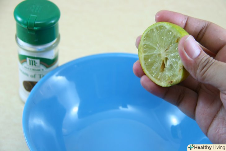 Приготуйте розчин. змішайте в невеликій мисці 1 частина винного каменю з 1 частиною лимонного соку до утворення пасти. [12] переконайтеся в тому, що ви ретельно змішали компоненти, перш ніж наносити пасту на пляму.- Винний камінь особливо ефективний при видаленні з шкіри глибоко в'їдаються плям (таких як плями крові). [13]